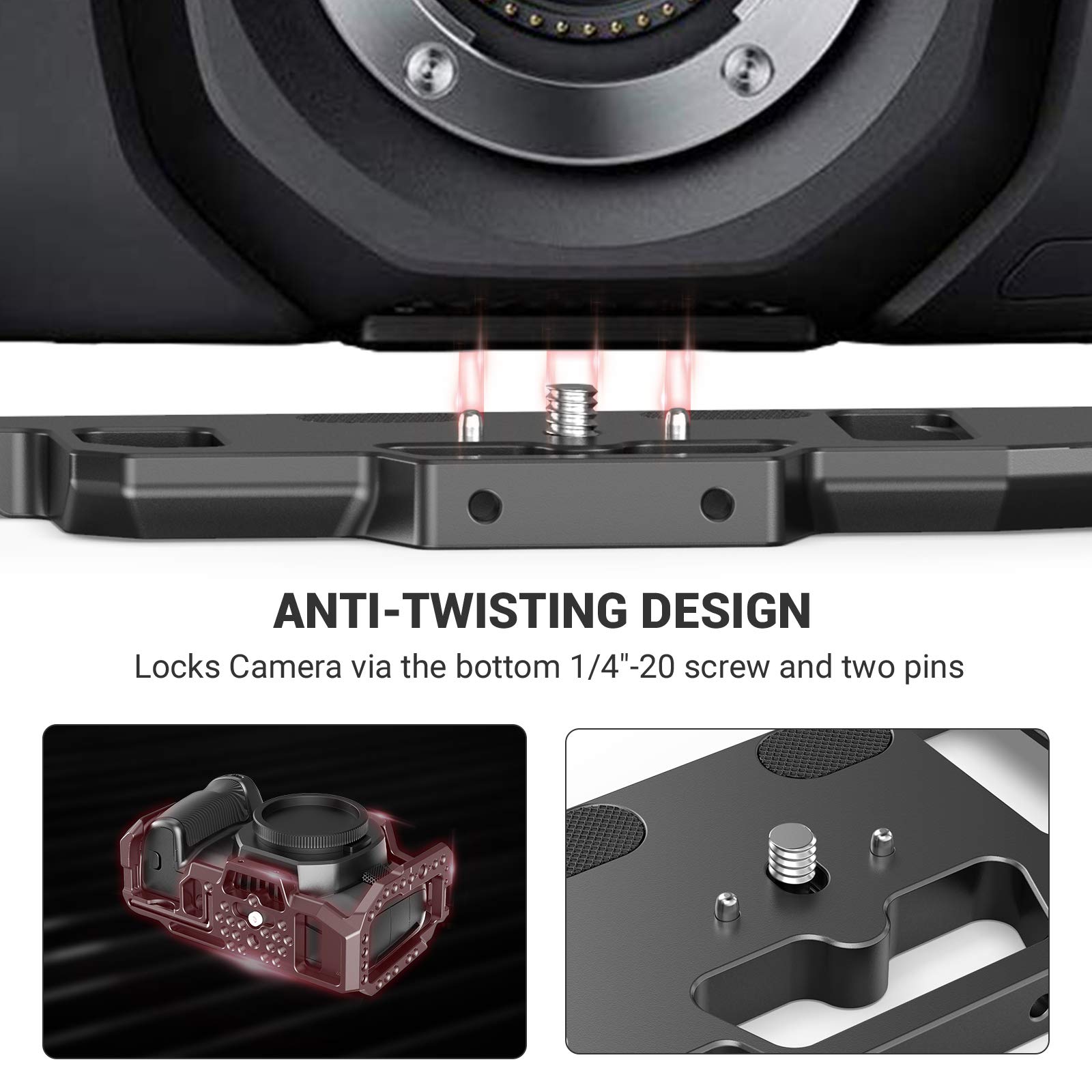 - 【PERFECT PROTECTION】Secure tightly via 2 screws on the top and bottom, 2 detachable small pins are used to prevent your camera from twisting. Rubber pads on the bottom protect your camera body from scratching