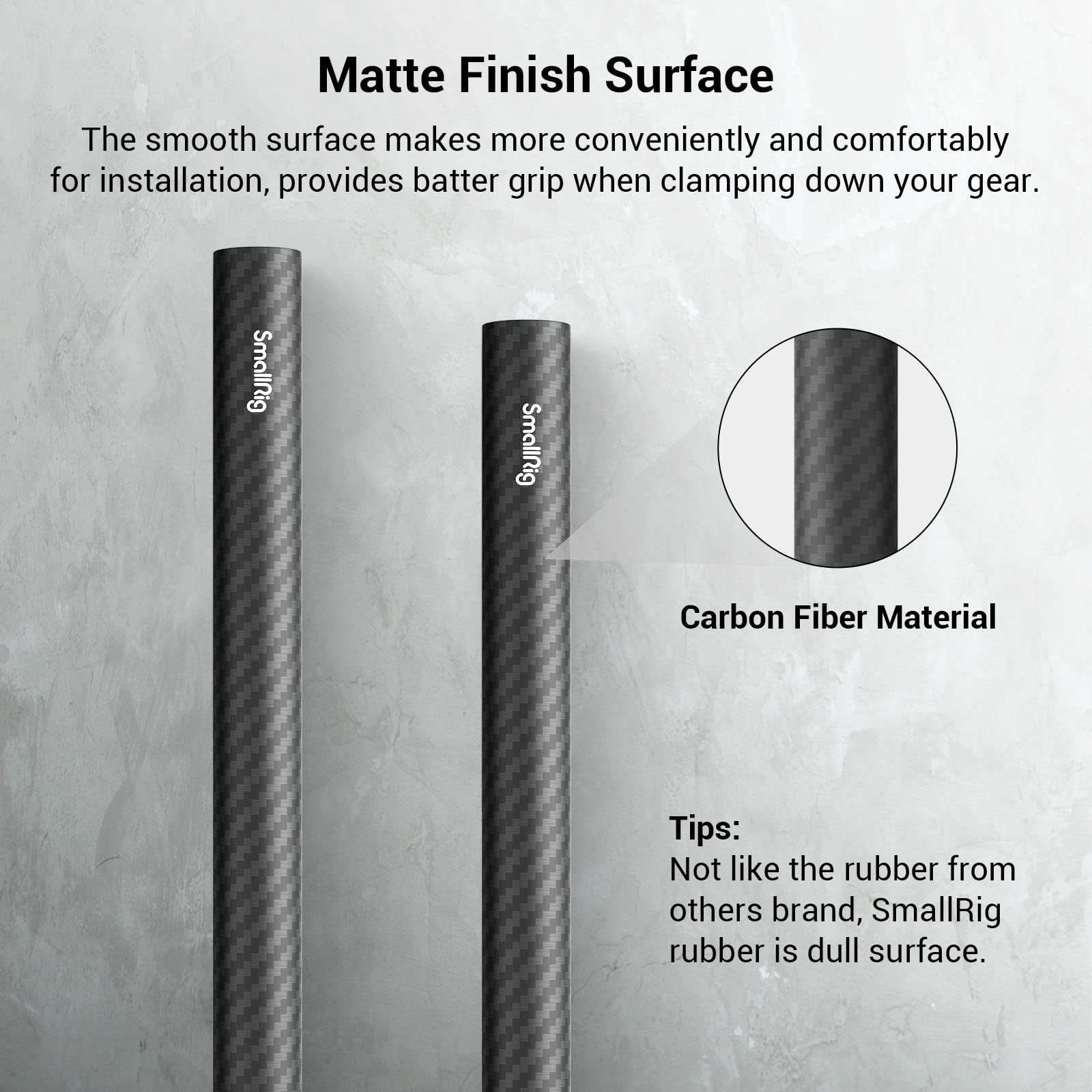 SmallRig 15mm Carbon Fiber Rod for 15mm Rod Support System (Non-Thread), 8 inches Long, Pack of 2