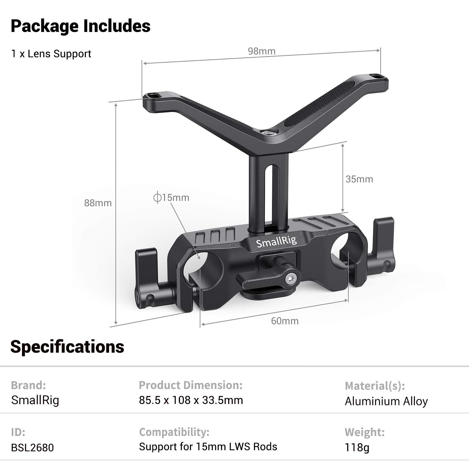 - This Lens support system is perfect for long lenses and is compatible with any industry-standard 15mm rod system, help to create a more stable, vibration-free platform for shooting.