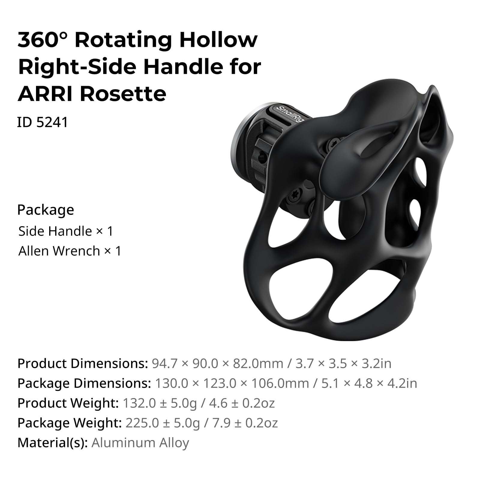 - Compatible for ARRI Rosette – Mounts directly to rosette-equipped cages or connects to shoulder rigs via adapter for ARRI Rosette. NOTE: ONLY FOR RIGHT SIDE (Left-Side Handle ID: 5240)