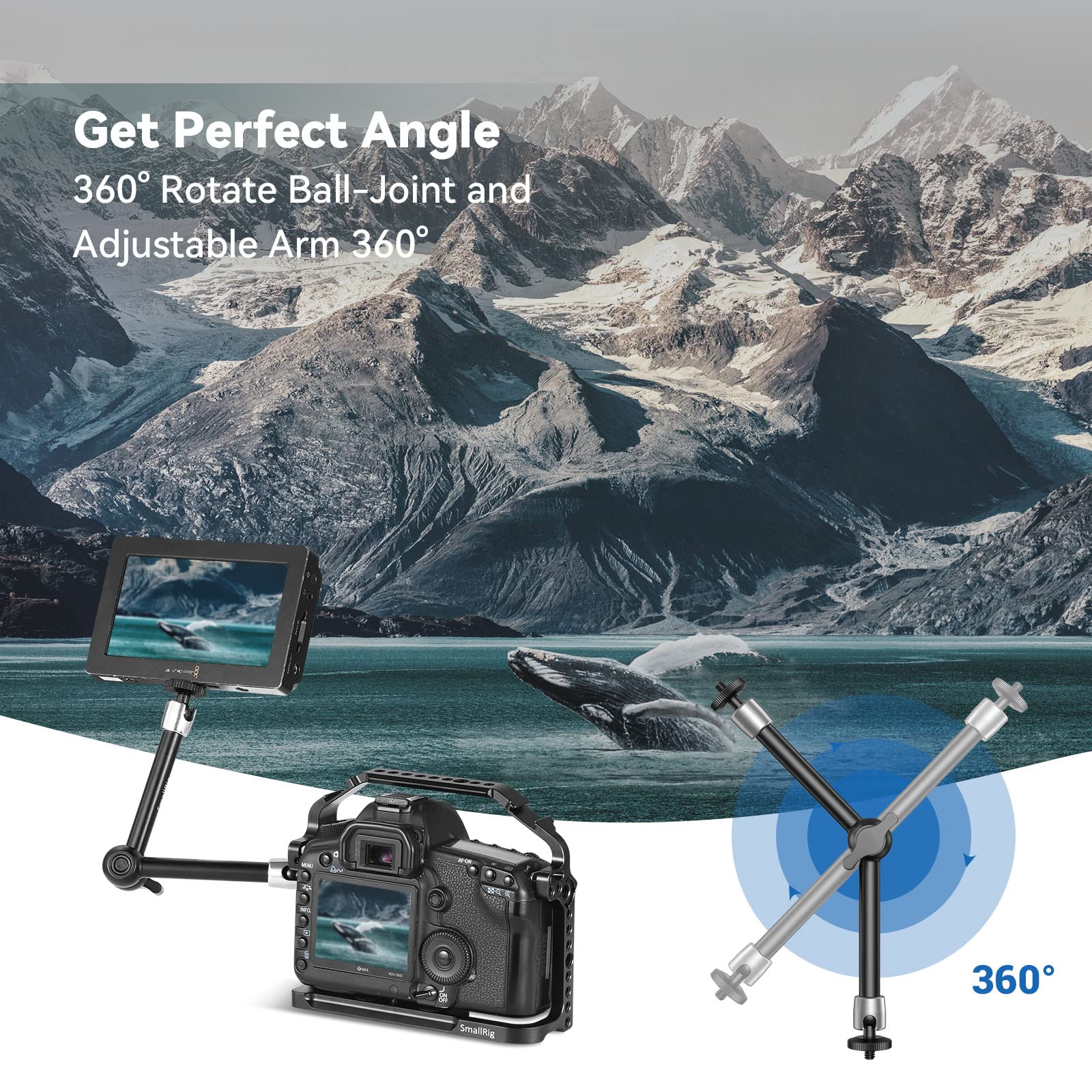 - 【EASY POSITION】Double 360 degree Ball Head Articulating design adjusts any angles based on your needs.