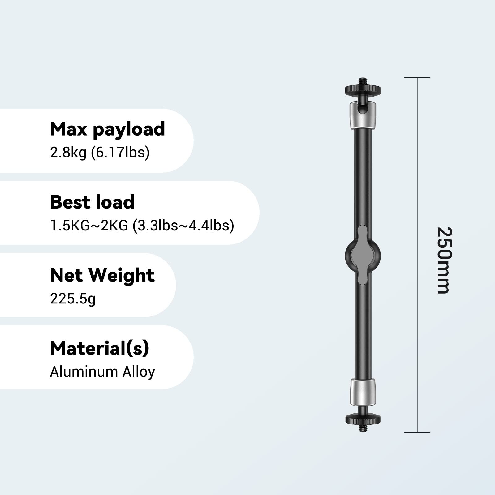 - 【WIDE COMPATIBILITY】With 1/4″ thread on both ends to install any on-camera flash lights, microphone, LCD monitor, DV Monitor, SmallRig quick release plate 3513 on one end and other accesorries like cage, NATO rail 1973, side handle 2093, 3813 etc.