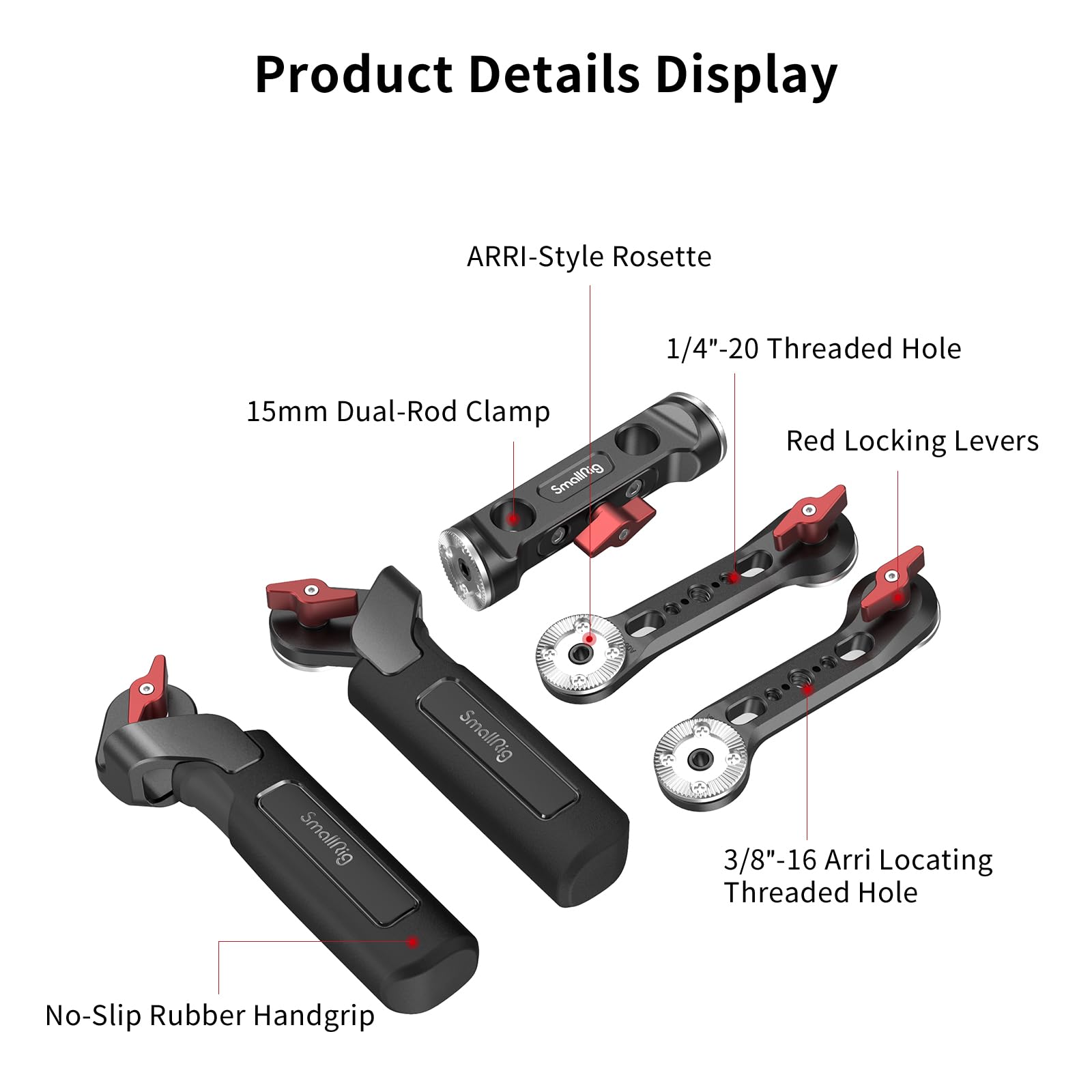- 【CAMERA SHOULDER RIG】The camera shoulder rig is an assembly of SMALLRIG Rubber Handle 1963, Extension Arm 1684 and Rosette Bracket 1898