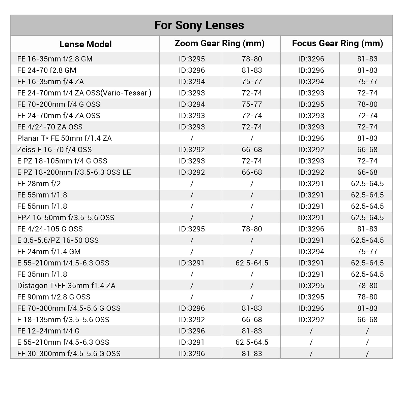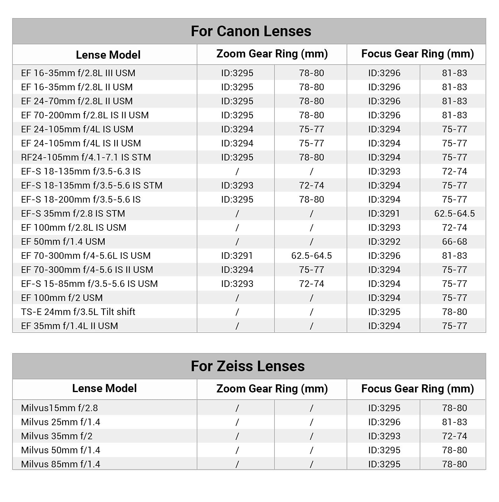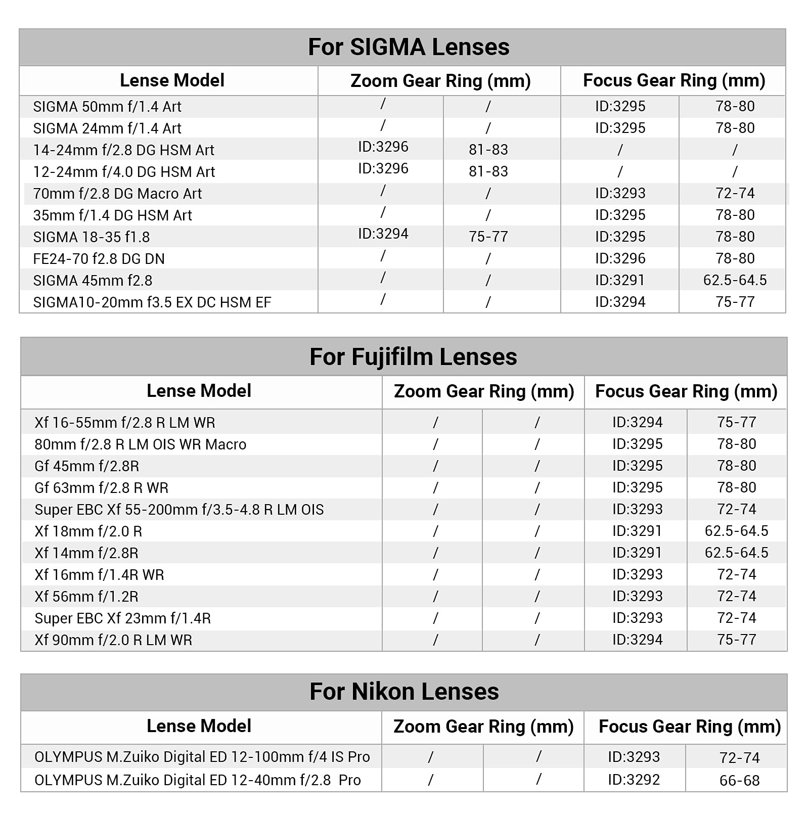 - 【RELATED ACCESSORIES】The ring 3293 can work with SmallRig Mini Follow Focus 3010 and other follow focus systems, such as Seamless Focus Gear Ring 62.5 to 64.5mm 3291, 66 to 68mm 3292, 75 to 77mm 3294, 78 to 80mm 3295, 81 to 83mm 3296.