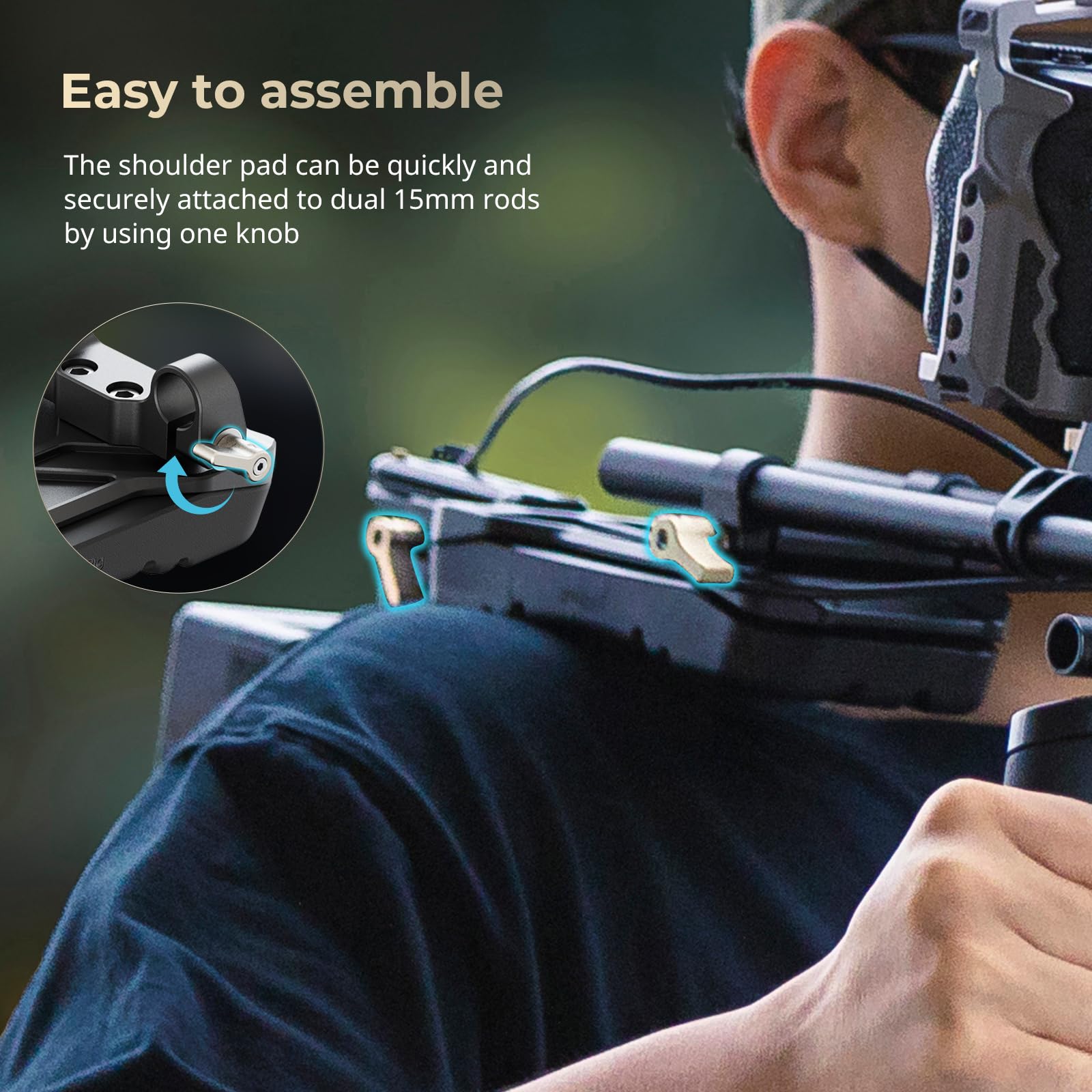 - 【Efficient Assembly】- The shoulder pad can be quickly and securely attached to dual 15mm rods by using one knob, providing superior stability and quick disassembly as well.