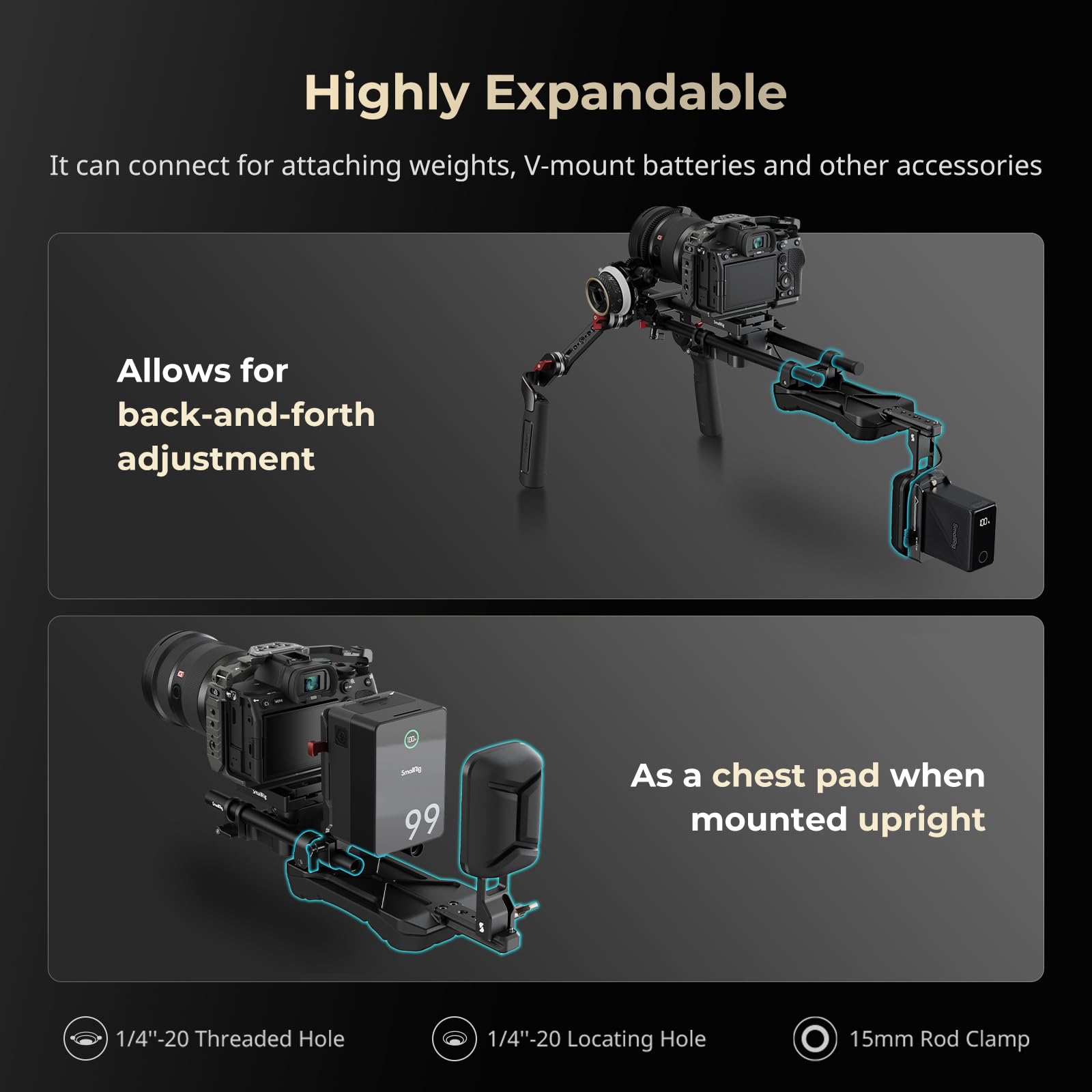 - 【Highly Expandable】- Built-in 1/4”-20 holes, it can connect for attaching weights, V-mount batteries and other accessories. It features a modular design that supports additional SmallRig 15mm rods 1054, handle kit 2002F, baseplate 2092B, mini follow focus 3010C, battery baseplate 3018B, and battery 4469 for integrated professional use.
