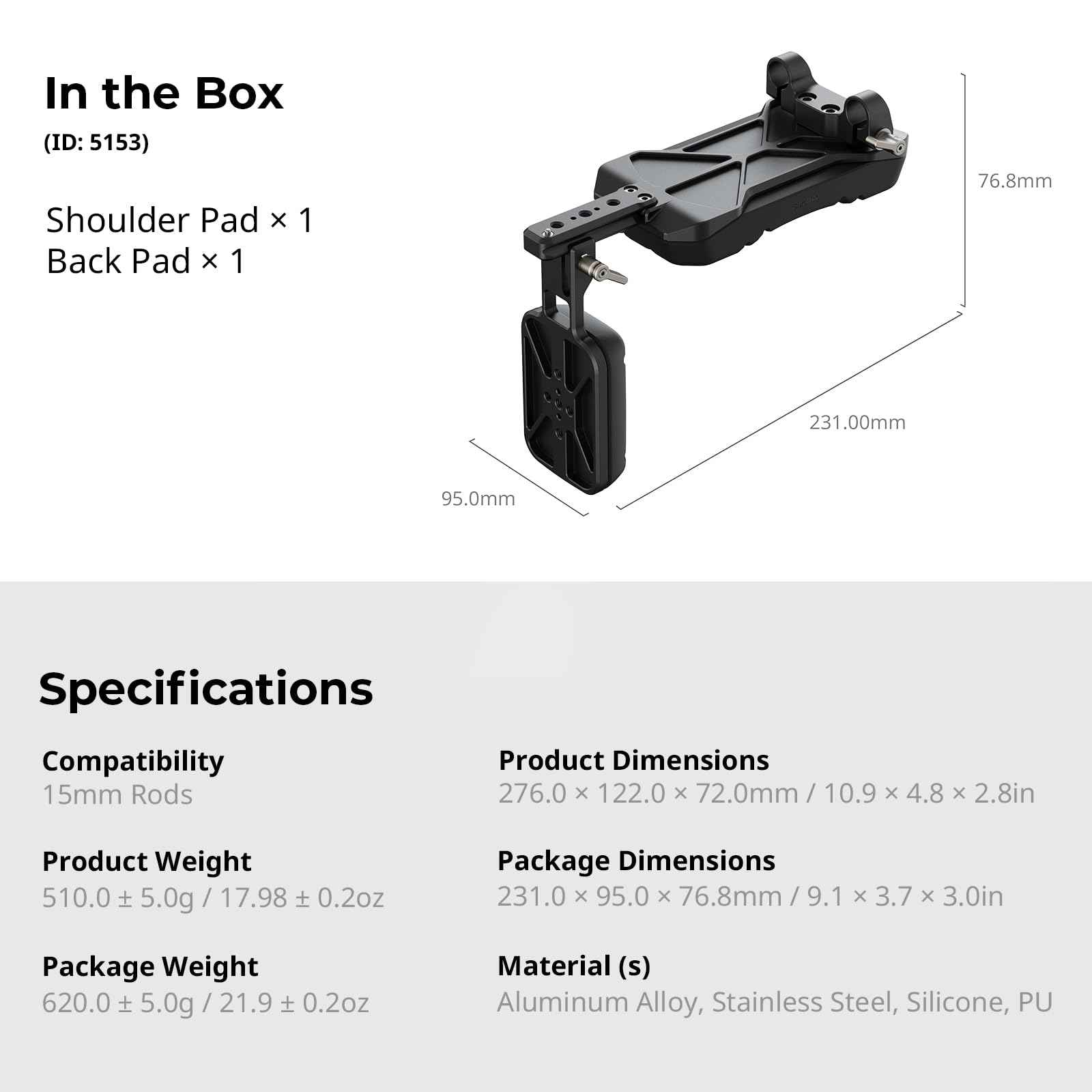 SmallRig Universal 15mm Shoulder Pad Support, Shoulder Mount Rig with 15mm Dual Rod Clamp & Back Pad 5153