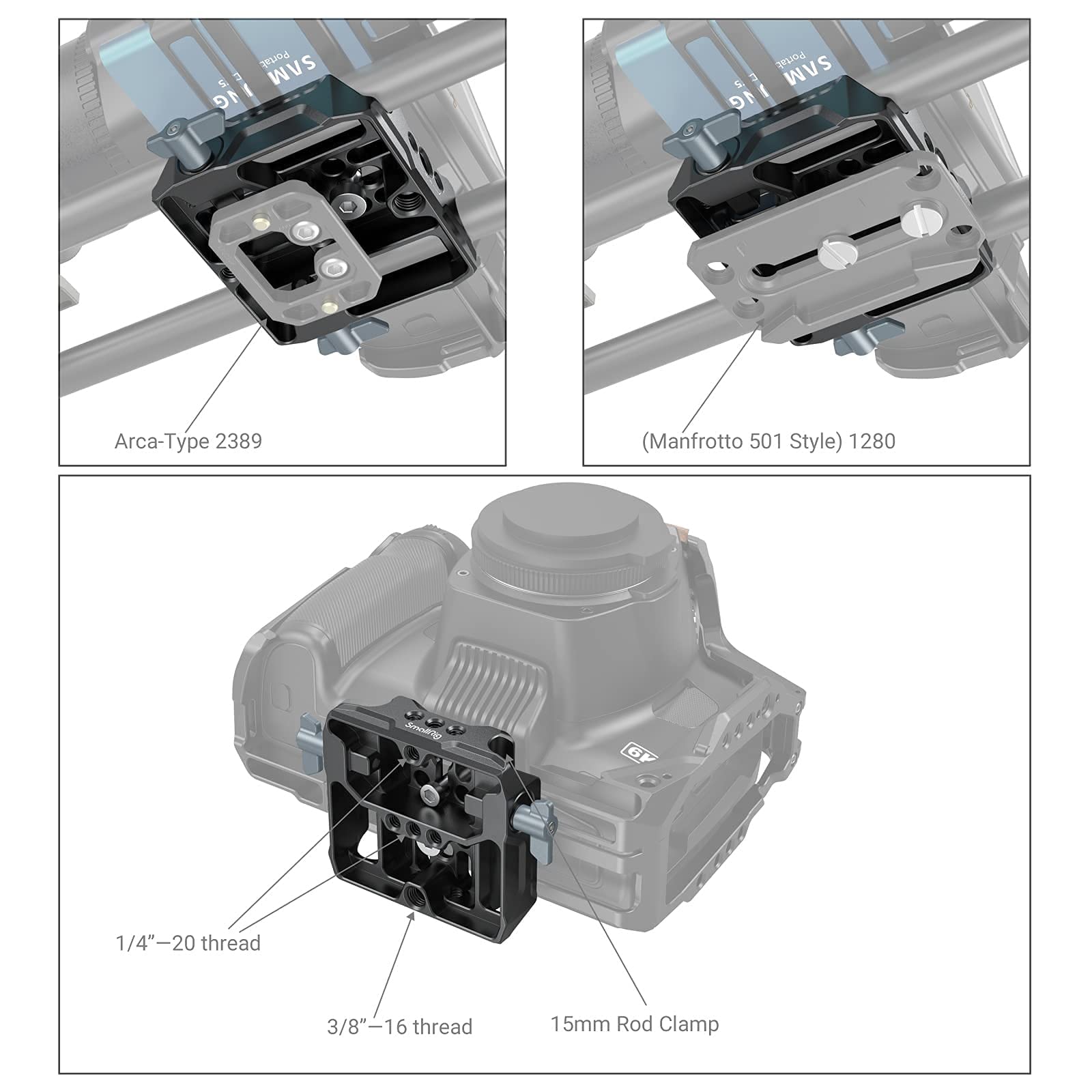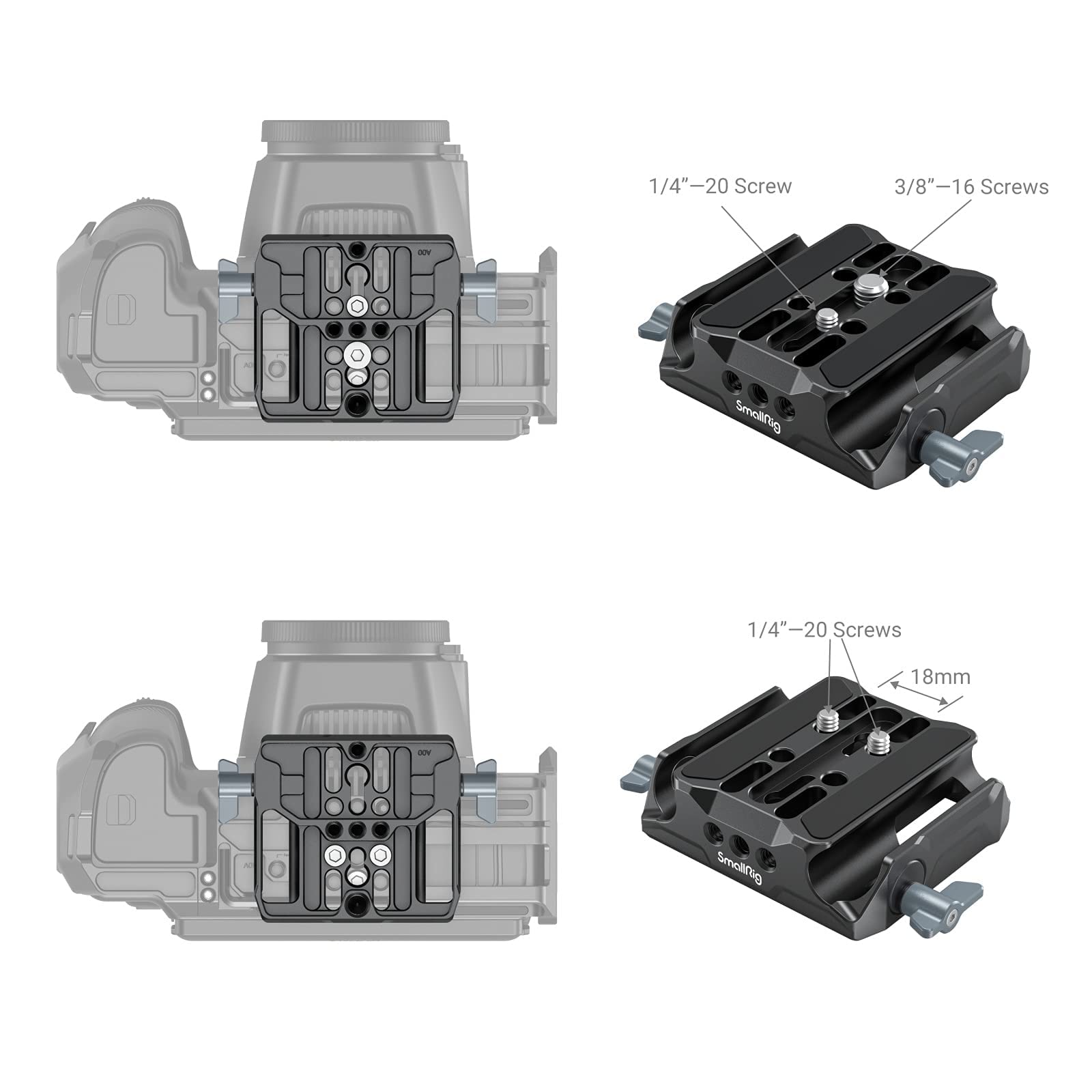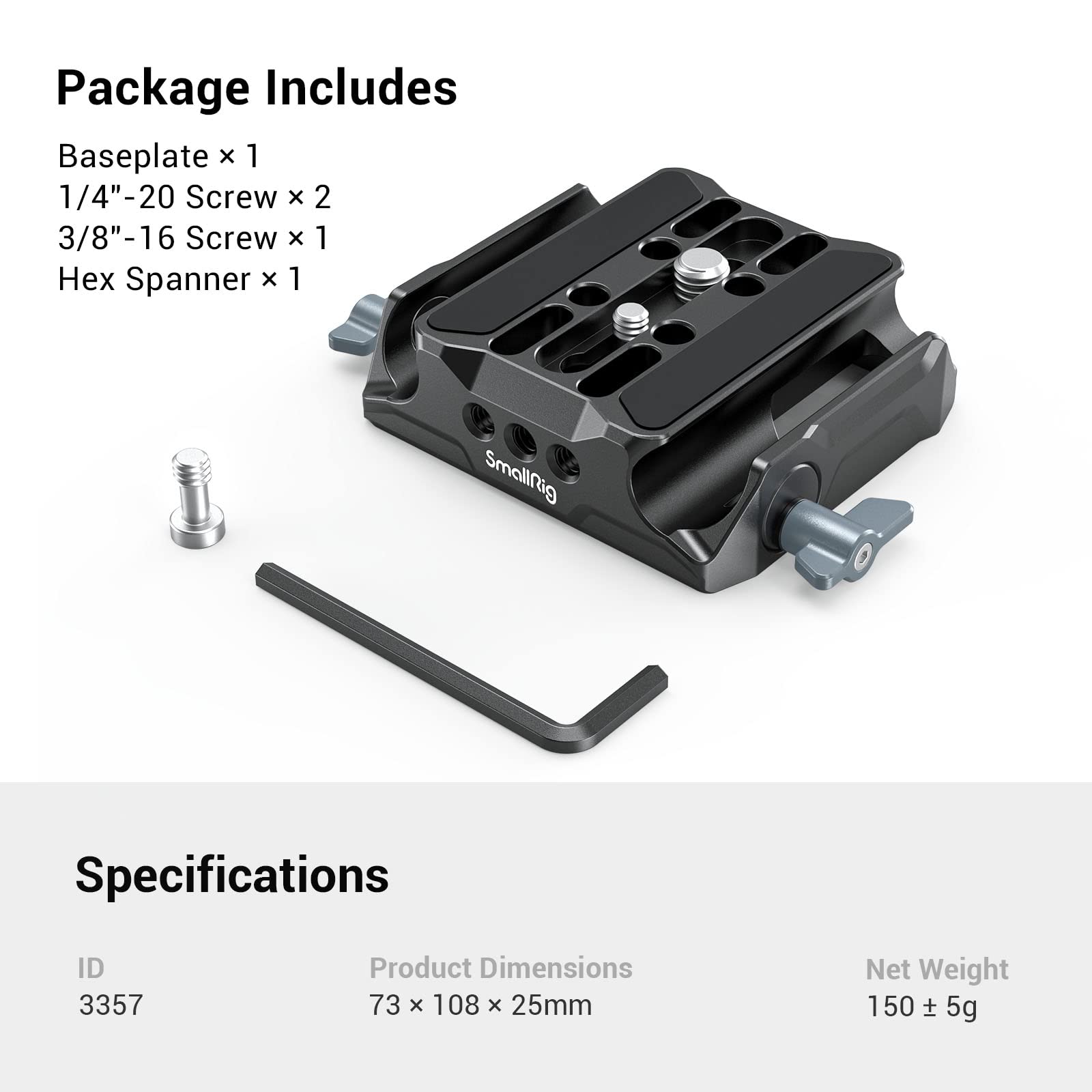 - 【STABLE &LIGHTWEIGHT】SMALLRIG Universal LWS Baseplate with Dual 15mm Rod Clamp fits mainstream DSLR and mirrorless camera cages on the market. The baseplate is locked via the screws and attach to the camera via the 1/4″ or 3/8″ screws.
