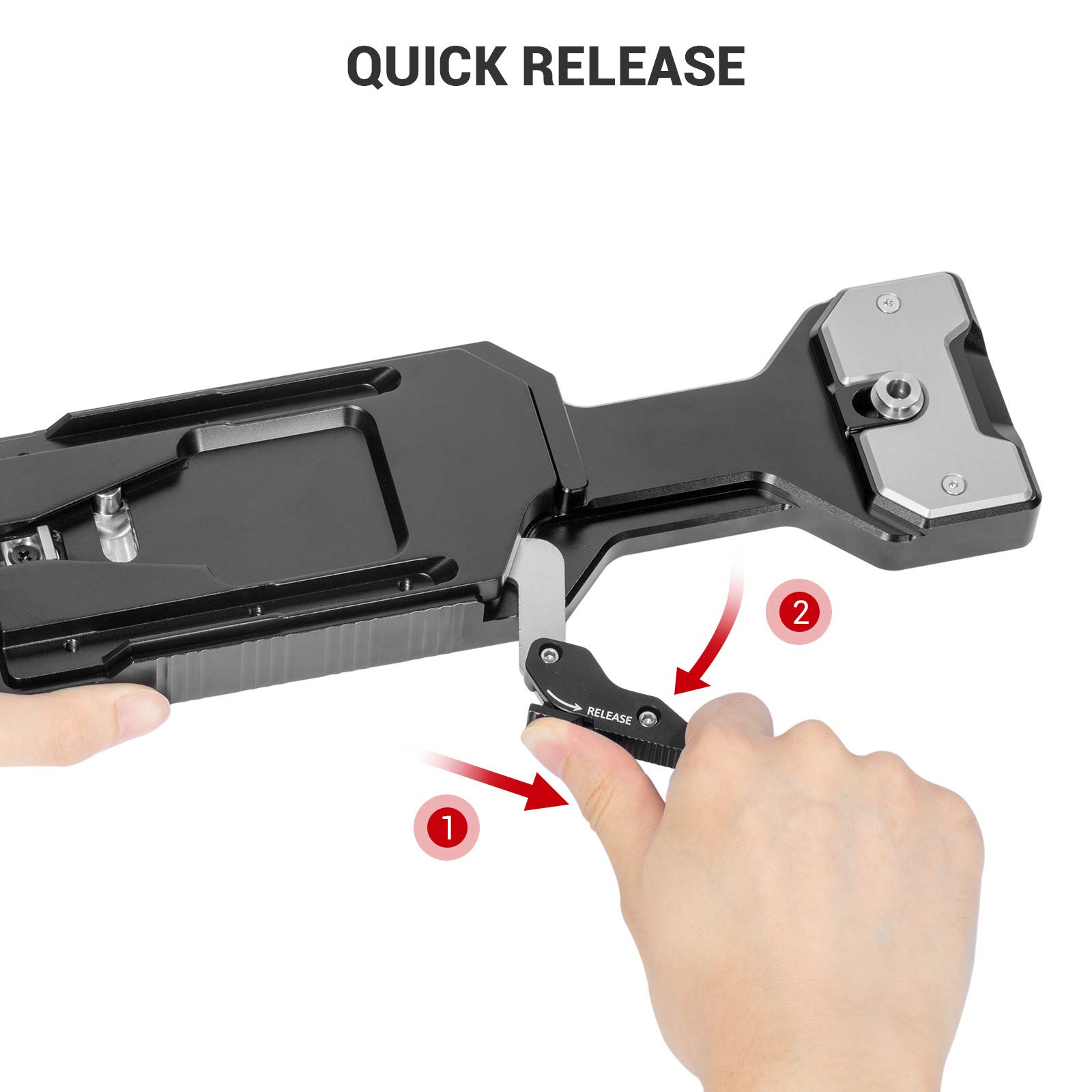 - 【SAFETY LOCKING SYSTEM】There is no slack and the camcorder is locked solidly to the baseplate since a spring-loaded rear pin is equipped to provide resistance when you’re pulling the camera on and off and prevent from potential sliding off